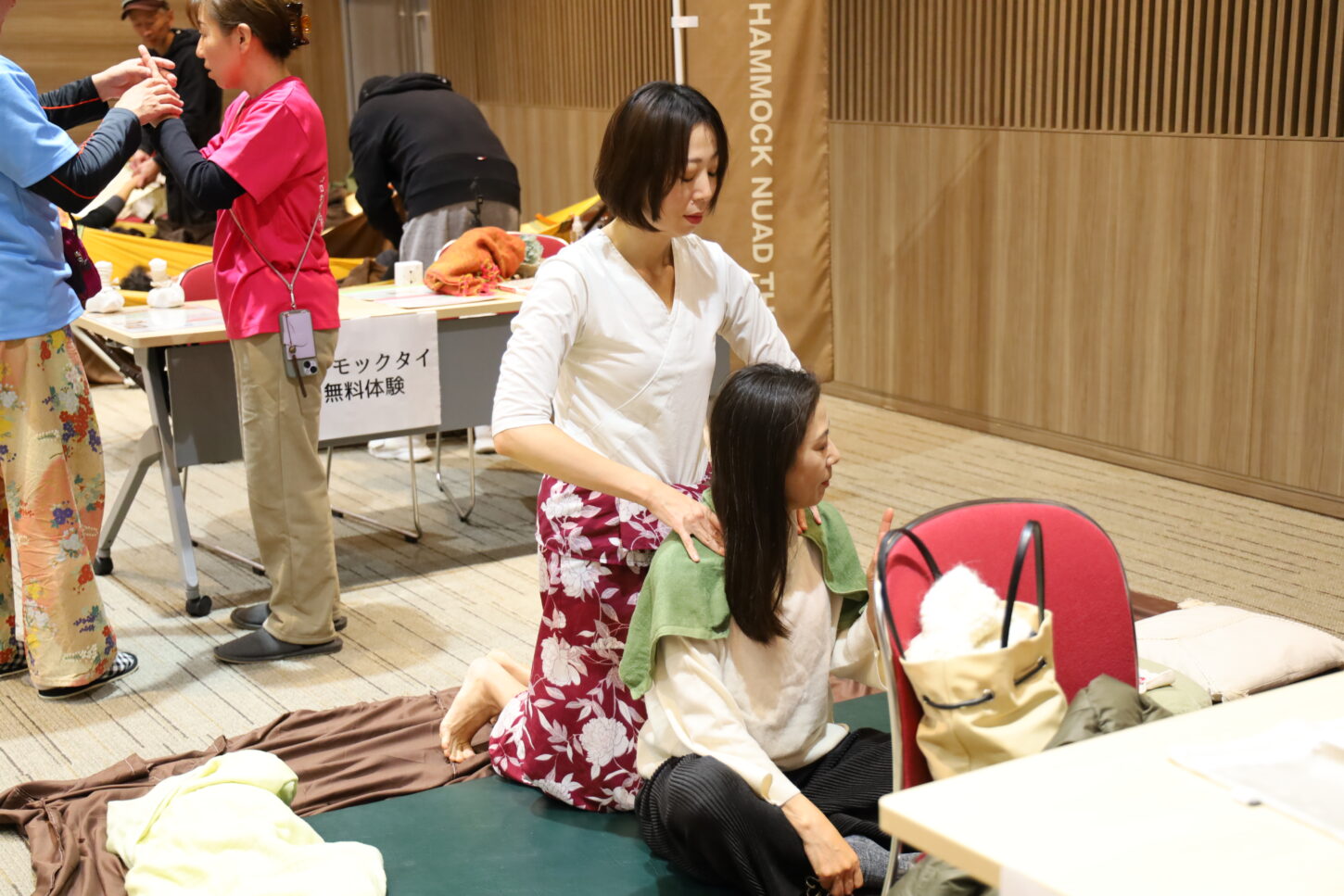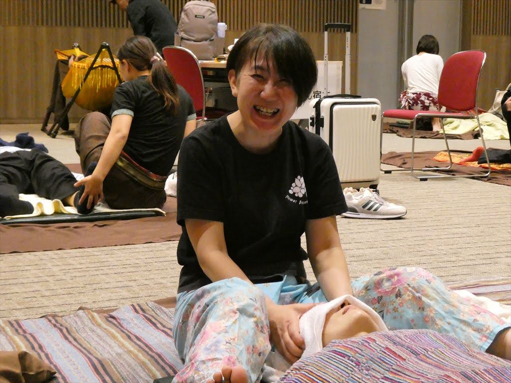 今回は、全国から集まったセラピストがそれぞれの得意な技術を提供し、来場者は自由に施術を受け比べることができました。