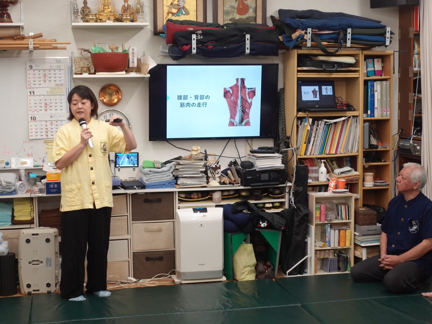 ■今回は腰・仙骨のツボと筋筋膜&ファシアをリリースする手技を教わりました。学びになった所は筋筋膜&ファシアの繋がりとツボをアプローチする事で、可動域の変化や歪みの改善、・長筋と仙骨の八りょう穴の関係性がとくに体感がありました。肘で押すだけではなく【揺らす】事で筋膜がリリースされるのを実感しました。実際の筋筋膜&ファシアのエコー映像もより施術時のイメージができ理解が深まりました。いつも沢山の気付きと直ぐ実践できる手技学びを頂き感謝してます。ありがとうございます